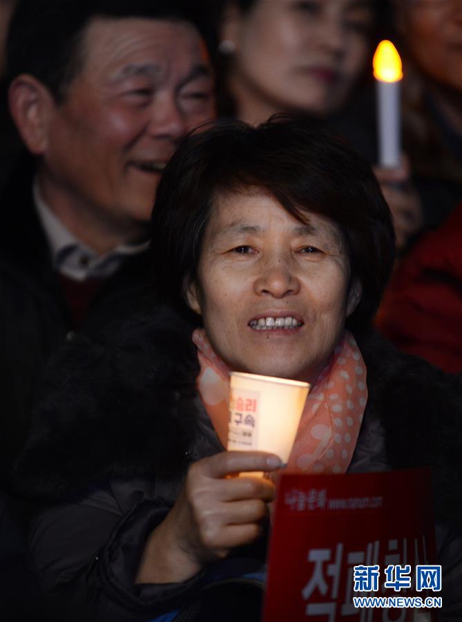 3月11日,在韩国首尔光化门广场,民众手持蜡烛灯参加集会。当日,韩国民众在首尔光化门广场举行第20次、也是最后一次“倒朴”周末烛光集会,敦促彻底追究朴槿惠和相关人士的法律责任。组织者称,约有50万人参加了集会。新华社记者刘昀摄