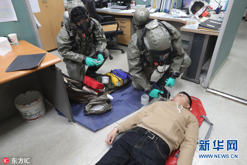 韩国举行反生化恐怖袭击演习 地铁站内上演“捂脸”一幕(组图)