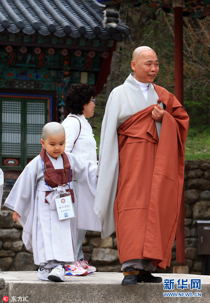 韩国小朋友参加童子僧出家受戒仪式 互摸光头萌萌哒(组图)