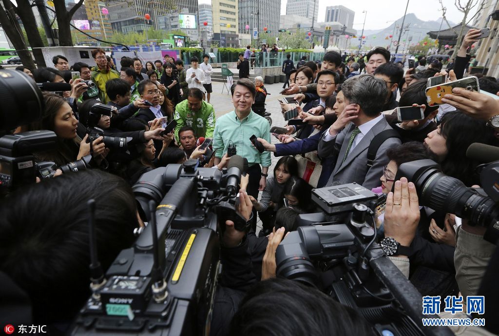 韩国国民之党候选人安哲秀街头拉票 为大选积极造势(组图)