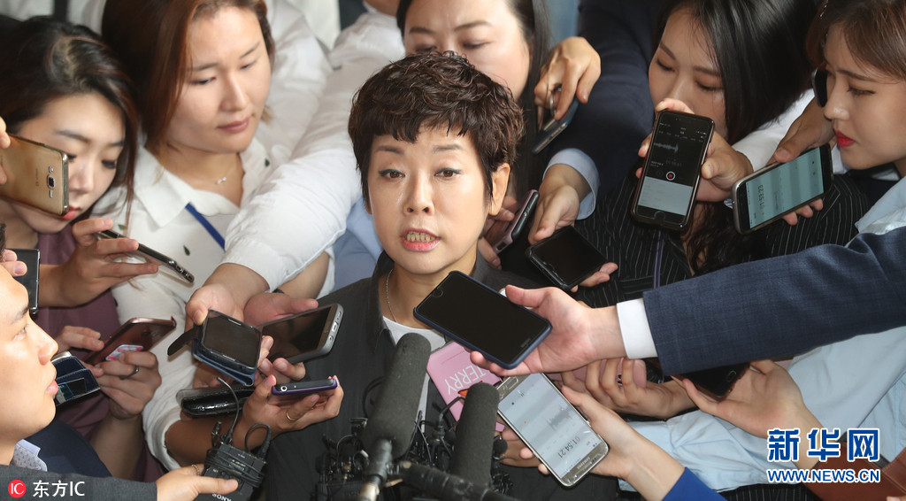 当地时间2017年9月19日,韩国首尔,韩国女笑星金美花现身首尔中央地方法院,接受传唤。