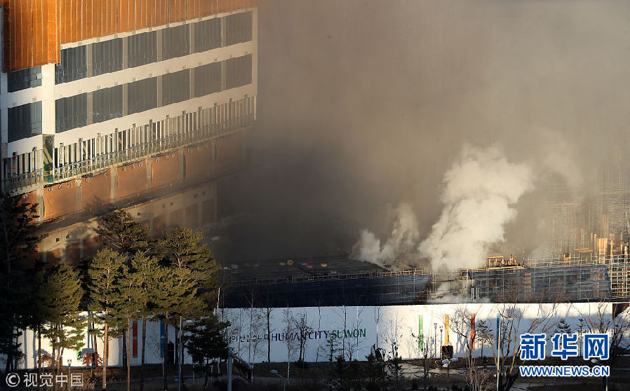12月25日,韩国水原市,当地一处公寓施工现场发生火灾,现场浓烟滚滚。(图片来源:视觉中国)