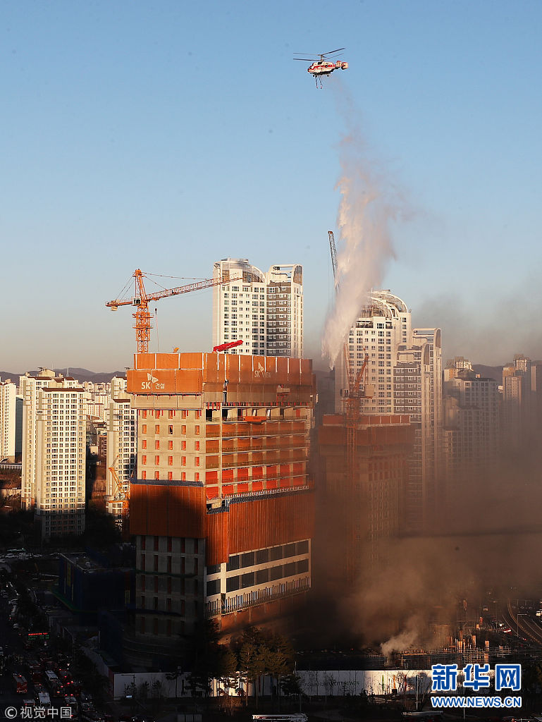 12月25日,韩国水原市,当地一处公寓施工现场发生火灾,现场浓烟滚滚。(图片来源:视觉中国)